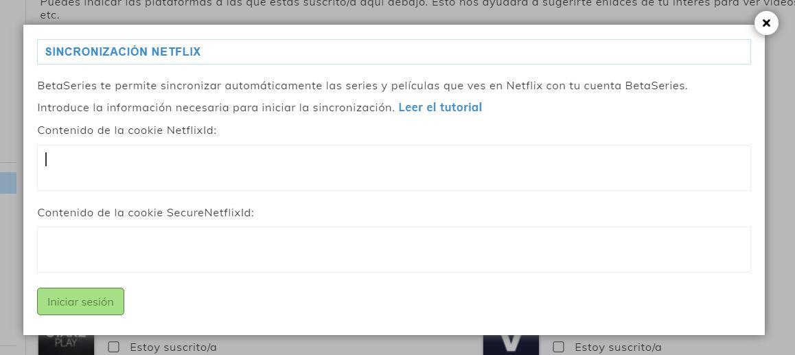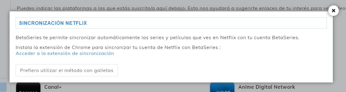 Existen dos maneras de sincronizar las dos cuentas: instalando la extensión de Chrome de BetaSeries, o bien, mediante el uso de cookies.