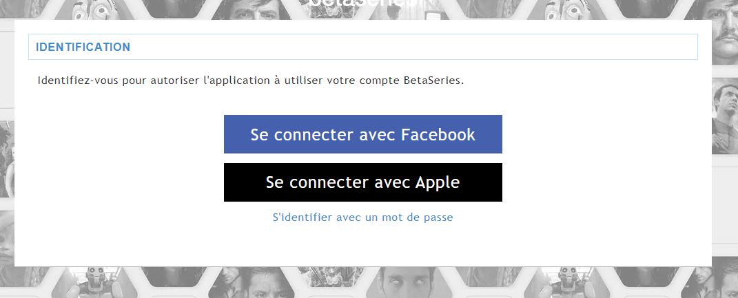 A continuación, identíficate con tu cuenta de Facebook, de Apple o con tu nombre de usuario y contraseña de BetaSeries.