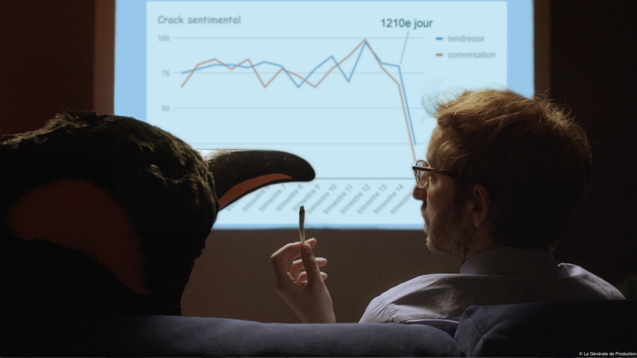 Olivier : et moi Olivier, un petit mètre 80, ce qui m’oblige à me mettre sur la pointe des pieds ou sur un trottoir pour pouvoir faire la bise à Alexandre. Ce qui allonge les vertèbre et m’a fait gagner un bon centimètre depuis que je l’ai rencontré. Sinon je chausse du 42 comme tout le monde, je suis graphiste comme pas mal de monde aussi, mais à 25 images par secondes, ce que les anglicistes appellent aujourd’hui “motion designer”. Et aussi des webséries donc, avec de vrais gens dedans. Le reste du temps je regarde les abeilles.