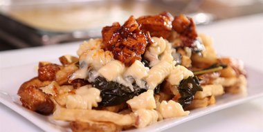 This trip, Guy's digging into a meat lover's paradise. In Colorado Springs, a Jamaican joint dishing out killer curry goat and jammin' jerk chicken. In Baltimore, a funky beer bar serving up wild boar sliders and outrageous pork belly mac and cheese fries. And in Washington D.C., an uber-deli carvin' up homemade pastrami and rolling out a meat-filled Moroccan specialty.