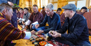 Bourdain and film director Darren Aronofsky (Requiem for a Dream, Black Swan) tour the remote South Asian Kingdom of Bhutan and travel on the winding East/West highway known for its spectacular views of the Himalayan Mountains. The seasoned explorers share a meal with yak herders, visit the capitol city of Thimphu for traditional Bhutanese cuisine, drive to Punakha to explore the village of legendary divine monk Drupka Kinley, and visit Bumthang for a bamboo archery competition.