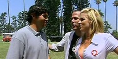 Kris feels like he needs to get in more shape, so his initiation treatment is to have his hair removed with some hair removal cream and his personal procedure is skateboard with an IV on. Pedro wants to overcome his fear of heights, so his initiation treatment is to be thrown off a crane wearing wings and his personal procedure is to rope climb down a seven story building. David is too uptight, so his initiation treatment is to get whipped in the butt and his personal procedure is to borrow a dime to do a coin trick for lesibeans. The group Therapy is to walk on broken glass bare foot and swallow goldfish.