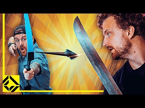 Niko enlists Jake to help him test a famous movie trope: The act of chopping a speeding arrow with a sword!