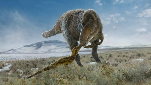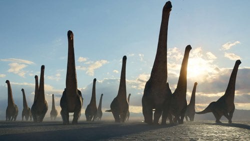 65 million years ago, dinosaurs dominated the planet. We follow several species in their daily life between hunting, fighting and survival. A Tyrannosaurus father and his offspring swim across a perilous seaway to feed on a dead giant turtle. Small Pterosaurs take their first flight in the face of predators. Others mate on the shores below. A pregnant Tuarangisaure is targeted by a Kaikaifilu.