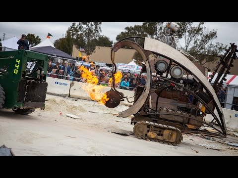 In experimenting with converting farm equipment to electric vehicles, fabricator Justin Gray has created a fleet of remote controlled robots that are as beautiful as they are tough. Heavily armored and uniquely sculpted, these robots looked like they rolled off the of the Mad Max set. We chat with Justin about his robots and how they each have a personality of their own.