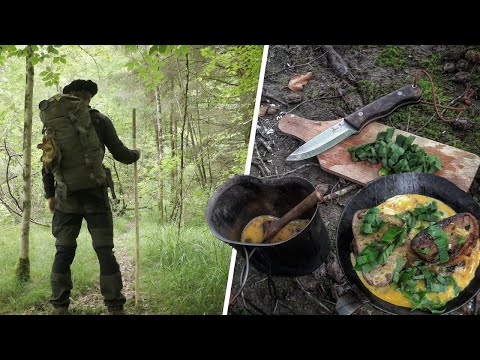 Je passe 12h en forêt pour cuisiner un hamburger bushcraft à l'ail des ours sur mon réchaud à bois Petromax. J'en profite aussi pour concevoir un bâton de marche en bois. Il me sera très utile pour mes prochains bivouacs.