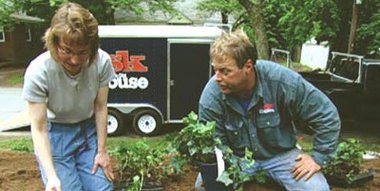Landscape contractor Roger Cook helps homeowner Roseann Ferrini plant ivy and pachysandra on the slope in her front yard. Then general contractor Tom Silva heads off to Florida to help Miami homeowner Marc Jacobson unstick the sash on his double-hung windows.