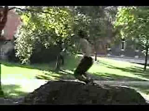 Jamie doing a front flip out of a tree