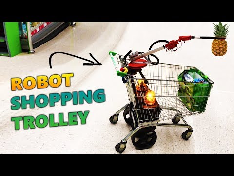 We build kids' invention ideas and Zander challenged us to build his robot shopping trolley. So here's what happened when we took it to the local supermarket - retro style!