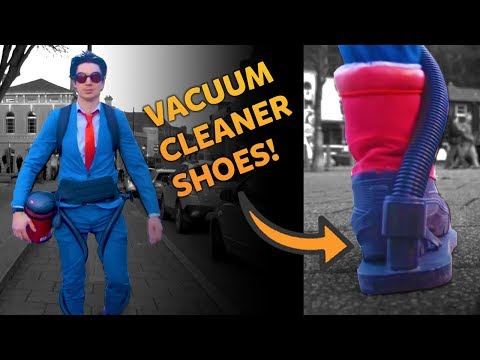We build kids' invention ideas and 10-year-old Theo challenged us to build his suit that sucks up litter! Here's what happened when we tested it out.