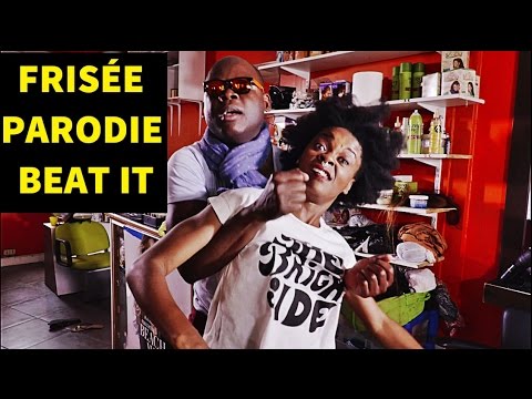 "Frisée" est une parodie de "Beat it" qui montre avec humour et sans tabou le parcours d'une JF aux cheveux crépus à la recherche d'un coiffeur