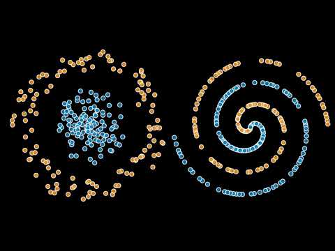 Visual illustration of connection between neural network architecture, hyperparameters, and dataset characteristics. Explore this connection yourself at: https://playground.tensorflow.org/