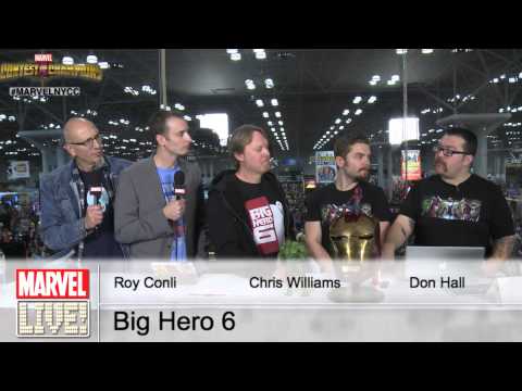 Writer and Director Don Hall, Director Chris Williams, and Producer Roy Conli stop by Marvel LIVE! to discuss the new movie and give a word of advice to future animators at New York Comic Con 2014.