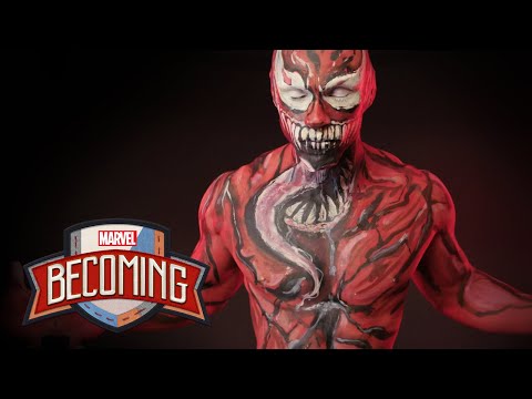Watch as cosplayer Eddie Pagan becomes Carnage with the help of makeup artist Aria Ferraro in a new episode of Marvel Becoming!