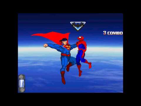 Batman and Spider-Man vs Iron Man and Superman simulated in the MUGEN engine.