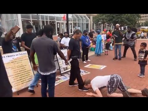 A group known as Watchmen For Israel was preaching about white people and their debt to the black community. They used a white attendee who volunteered as an example of how to apologize for things....that you didn't do, LOL.