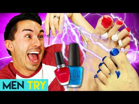 Men Try Painting Their Toenails - Electric Shock Challenge