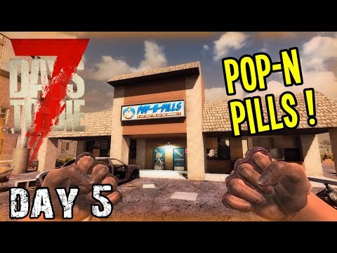 7 Days To Die | Day 5 | Raiding a Pop-N-Pills Store! (Alpha 18 Random Map Playthrough)