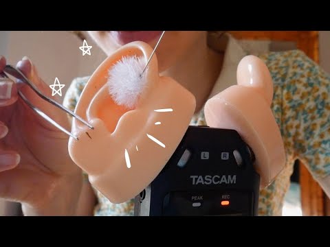 Dans cette vidéo: ear cleaning (nettoyage des oreilles), binaural, plumes / pinceaux dans l'oreille, retrait des épines avec une pince, papouilles au pompon et massage à l'huile. + chuchotements et gants.