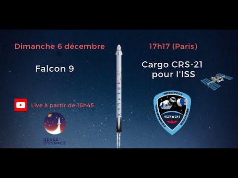 Lancement du cargo Dragon CRS-21 à destination de la Station spatiale Internationale par une Falcon 9 depuis la base de Cap Canaveral en Floride. Décollage prévu à 17h17 heure de Paris.