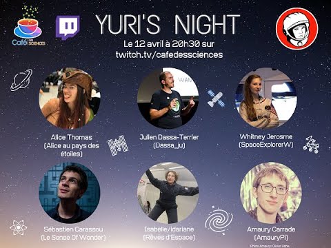 Le replay de la Yuri's Night du 12 avril 2020 sur le Twitch du Café des Sciences (https://www.twitch.tv/cafedessciences)