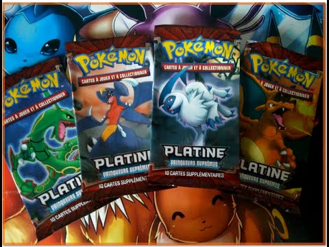 Ouverture de 4 boosters pokemon Platine Vainqueurs suprêmes, ça faisait longtemps que je n'avais pas ouvert mon bloc favori, il était temps d'y remédier :D
