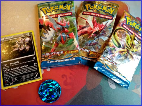 Ouverture d'un tripack pokemon Rupture turbo avec la promo de Noctali, c'est vraiment chouette d'avoir trois boosters de la même série, ça permet de compléter plus vite :D