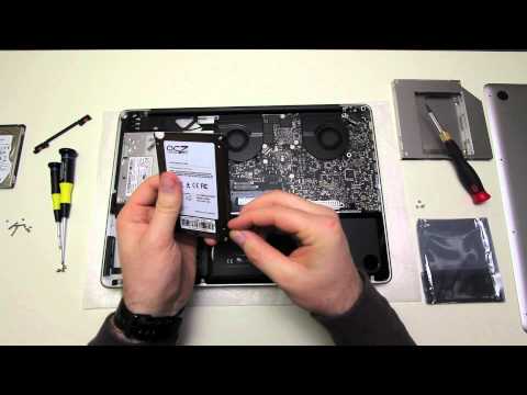 This video explains the process of upgrading the stock MacBook pro hard drive to an SSD. The SSD used in this install is an OCZ Vertex 3. The stock hard drive was moved to the optical drive bay using an optibay style adapter. Here are some more details on the SSD drive -