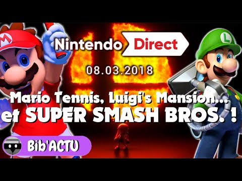 Super Smash Bros Switch, Luigi's Mansion ou encore Mario Tennis Aces... Retour sur les nouveautés Switch et 3DS du Nintendo Direct du 08 Mars 2018 avec de la confirmation, du portage et quelques surprises !