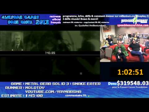 [AGDQ 2013] MGS3: Snake Eater par Molotov (comm: DamDam, Dataripper, dr_raichi) - restream français