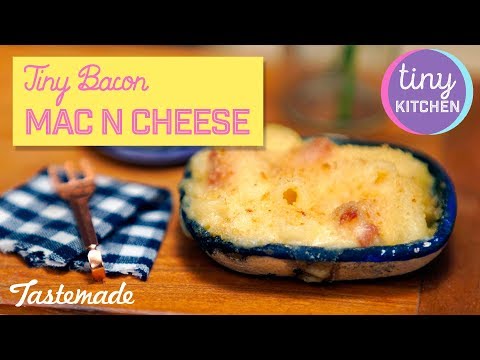 Comfort food classic mac and cheese gets miniaturized, along with delicious TINY chopped bacon!