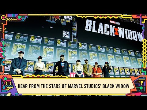 Marvel's Lorraine Cink meets with the newly announced cast of Marvel Studios' Black Widow right after they get off the SDCC 2019 Hall H stage. Scarlett Johansson, David Harbour, Florence Pugh, O.T. Fagbenle, and Marvel Studios' President Kevin Feige shine some light on the upcoming film.