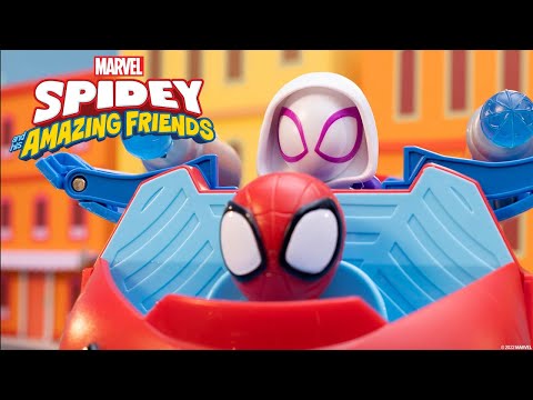 Spidey, Ghost-Spider, and Miles use their brand new Web Spinning Hauler to compete in a high speed Webstacle course! But watch out, Doc Ock, Rhino, and Green Goblin are just around the corner, ready to spoil the fun! Will Spidey and Friends be able to thwart their evil plans?