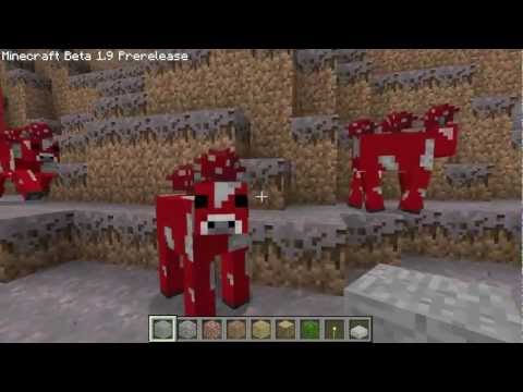 Quick tour of Minecraft Beta 1.9 Pre-release Mushroom Biome and shroom-cows!