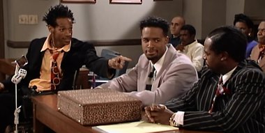 Marlon slips in Shawn's spilled coffee and breaks his leg, which knocks him out of the cash prize he was sure to win in a dance contest. Marlon sues Shawn in small claims court for the two grand, but in the end admits all he really wanted from Shawn was an apology.