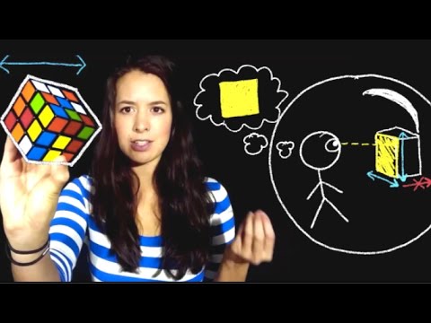 So in a 1D world, they have 0D vision, in a 2D world, they have 1D vision. Can you spot the pattern? nD world means (n-1)D vision. It then follows that we (3D citizens) see in 2D. If you imagine yourself in our 3D world staring at a cube, notice you will only see a 2D square, the face of the cube. You can see length and width, but not depth. So why do you get the "feeling" that you can see depth?