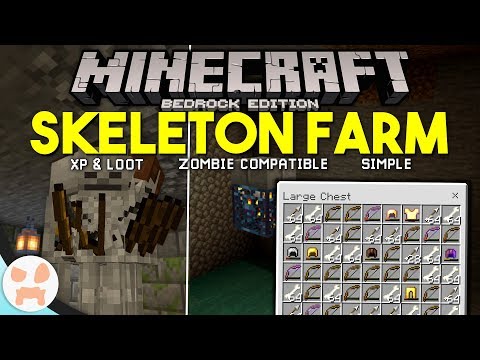 This video is a tutorial for an easy skeleton farm that works well in Minecraft Bedrock Edition (PE, Xbox, Switch, Windows 10). This farm will get you bones, arrows, bows, armor, and XP. This build will also bring your skeletons down to one hit.