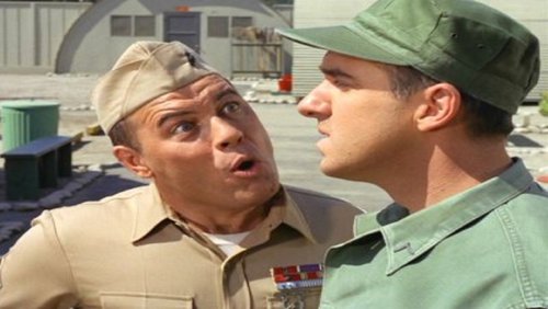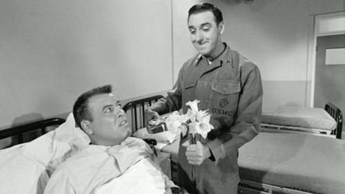 Gomer Pyle was a sweet but not too smart Marine from Mayberry, North Carolina who was stationed at Camp Henderson near Los Angeles, California. Gomer's innocence, naivete and low-key demeanor often got him into trouble, most frequently at the hands of his loud-mouthed superior, Sgt. Carter. Duke, Frankie, Lester and Larry were some of Gomer's pals and fellow enlisted men at Camp Henderson.