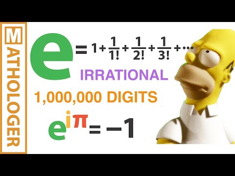 In this follow-up video to his "e to the i pi for dummies" video the Mathologer sets out to properly explain the coolest features of the famous number e and the exponential function e^x. Find out WHY e is irrational, how you go about calculating the first 1,000,000 digits of e, WHY the exponential function e^x is its own derivative, etc.