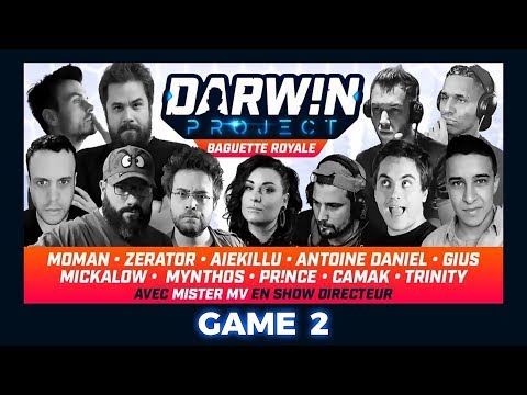 Incroyable ! Le tournoi Baguette Royale de Darwin Project ! Un invitational sur ce Battle Royale différent des autres avec en joueurs Aiekillu, Antoine Daniel, Camak, Gius, Mickalow, MoMaN, Mynthos, Pr!nce, Trinity & ZeratoR, ainsi que moi-même en Show Director ! $20,000 en jeu, c'est la folie, et c'est dur de tout réaliser tout seul hahah !