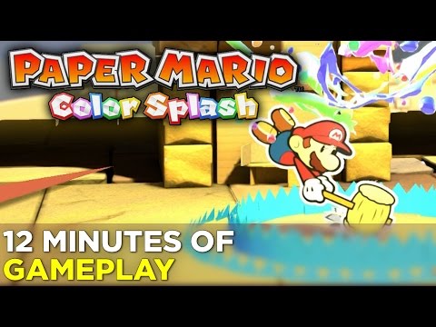 Check out over 11 minutes of hands-on gameplay from Paper Mario: Color Splash, including a look at the Golden Coliseum area, Mario's new "Thing" special attacks, and more!