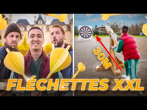 ? Nouvelle vidéo XXL, toujours devant un Château. Aujourd'hui on s'attaque aux fléchettes en version géante avec des flèches et une arbalète géante !