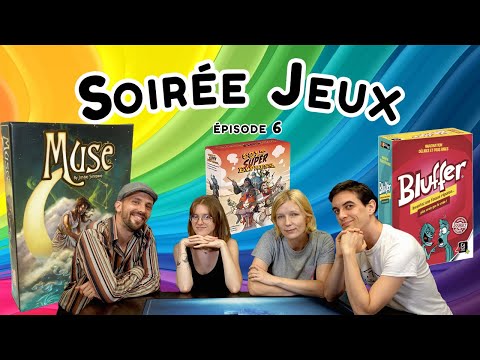 4 joueurs, 3 jeux et une soirée de rigolade. Amandine, Baptiste, Rachel et Simon s'affrontent lors de leurs soirées jeux de société à Muse, Bluffer et Colt Super Express