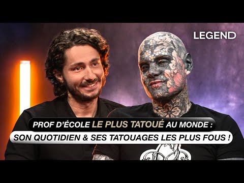Merci à FreakyHoody d’être venu dans le studio de LEGEND ! Sylvain Hélaine “FreakyHoody” est l’homme le plus tatoué de France. Il commence ses tatouages pendant un voyage à Londres quand il avait 27 ans, aujourd’hui il a passé plus de 600 heures à se faire tatouer pour 89 000€ . Il s’est fait tatouer les parties génitales, l’an*s, la langue, les gencives, le palais. Il est au quotidien professeur des écoles remplaçant en primaire, c’est aussi avec ce métier qu’il a reçu quelques plaintes des parents.