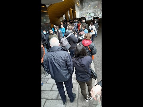 Une chaine de plusieurs centaines de mètres pour aller voter au 1er tour des élections présidentielles française de 2022, à Montréal