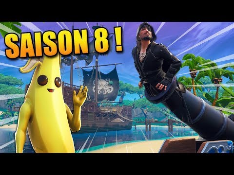 La saison 8 de Fortnite sort aujourd'hui, j'achète le passe de combat et pars explorer le nouveau volcan et son bateau pirate !