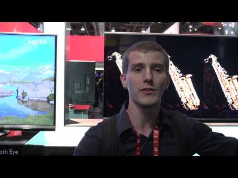 Sharp is showing off their "moth eye" TV finish, which allows you to have the contrast of a glossy screen without the HIGHLY reflective downside that usually comes with those TVs.