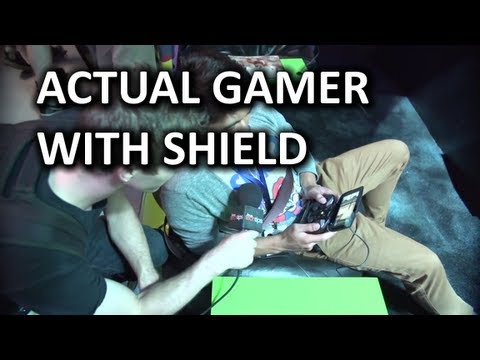 NVIDIA Shield in the hands of real gamers and demoing Miracast functionality. Now you can beam PC games to Shield, and you can beam Android games to your TV. Sky's the limit, folks.