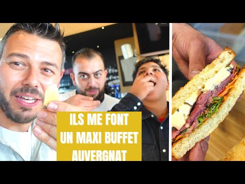 Ils m'ont invité à un maxi buffet qu'ils m'ont préparé pour faire le bilan de leurs premiers épisodes : une pyramide de fromages, un gâteau de pommes de terre, un Pounti, et un sandwich aux couleurs de l'Auvergne (filet de boeuf croisé Salers et Aubrac, un Saint Nectaire à la truffe, crudités).