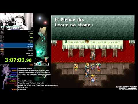 La tentative de speed run de Final Fantasy VI (FFIII US) qui fut jouée & comentée en direct sur la chaîne Liveplay 2 de Millenium.org. Le but était de réaliser moins de 5h30. Ai-je réussi? Mystère et obule de gomme!